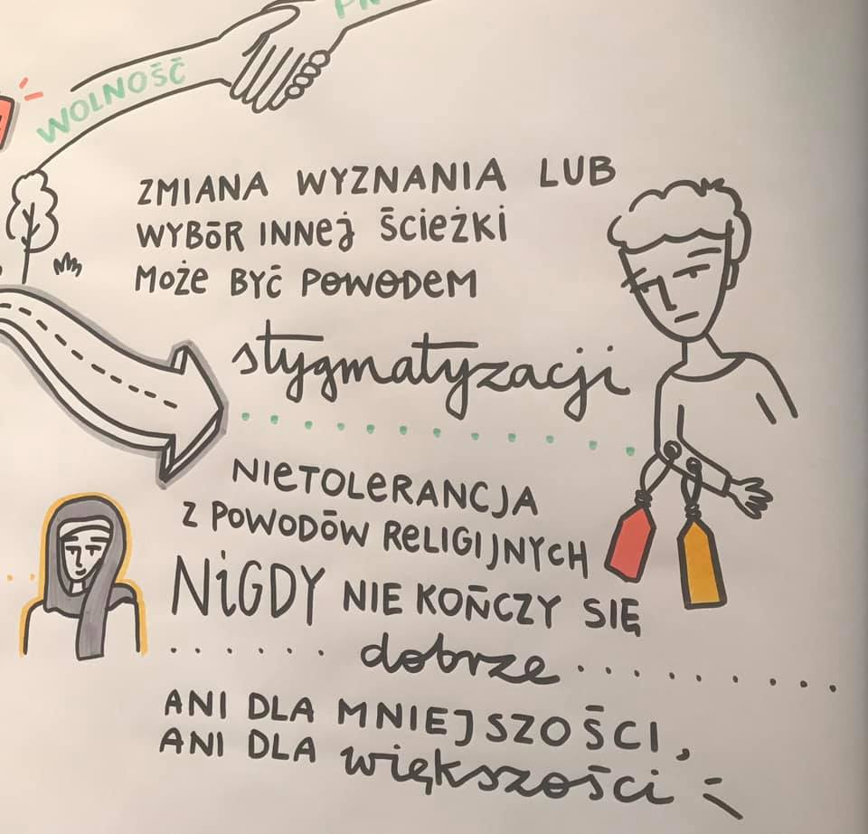 Dr Marek Moroń z Muzułmańskiego Związku Religijnego w RP wyjaśnił, że w rozumieniu islamu wolność to zdolność człowieka do zrobienia lub niezrobienia czegoś w oparciu o wolną wolę, a ta jest darem od Boga. Wolna wola jest Bożym narzędziem służącym do takiego kierowania swoim życie, aby „zaświadczać, skąd jesteśmy i kończąc swą podróż połączyć się z Bogiem”.Według dr. Kishana Manochy z Biura Instytucji Demokratycznych i Praw Człowieka OBWE, doświadczać wolności to wielki dar, ale jeśli doświadczasz jej obcymi oczami, np. w przypadku pracowników organizacji humanitarnych, a nie we własnym życiu, to nie poznajesz tej wolności w pełni.