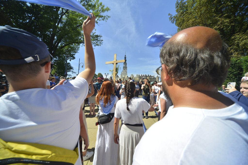 Strudzonych pielgrzymów przed jasnogórskim szczytem powitał kardynał nominat abp Grzegorz Ryś, a także jałmużnik papieski, kard. Konrad Krajewski, który zauważył, że pątnicy o niczym innym nie marzą, jak o tym, żeby „wpaść w ramiona Matki Bożej pełnej łaski, żeby ich uzdrowiła”.