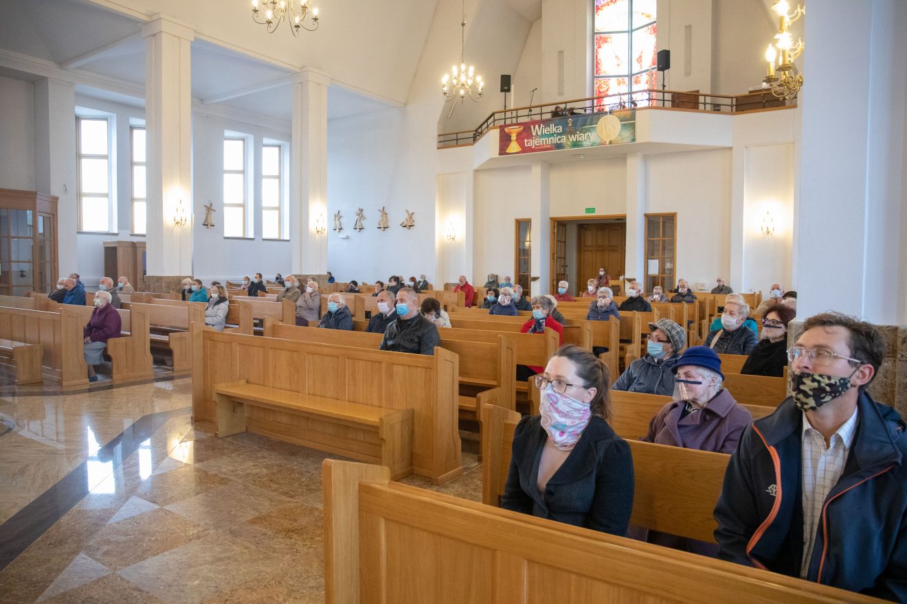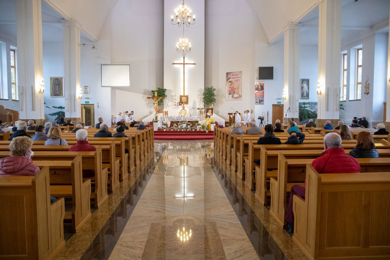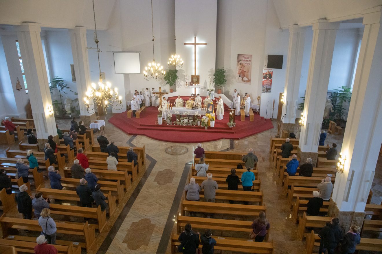 – Nasza parafia została erygowana, kiedy Ojciec Święty lądował na lotnisku Lublinek, a krzyż z ołtarza papieskiego jest wmontowany w wieżę naszego kościoła. Dlatego chcemy tę duchowość Jana Pawła II szczególnie w naszej parafii pielęgnować. – mówił we wprowadzeniu do liturgii ks. Andrzej Ścieszko – proboszcz parafii.
