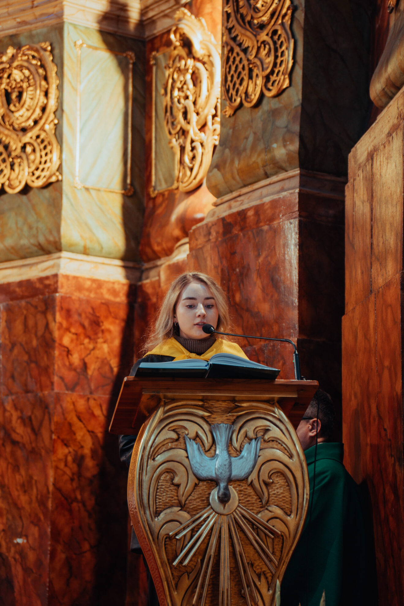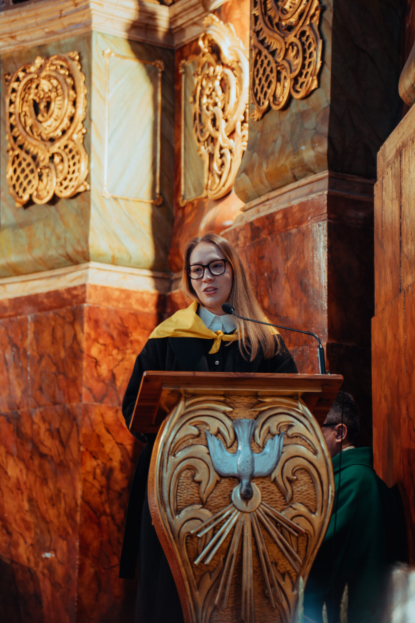Fot. Filip Grabowski, Aleksandra ZbochTen dzień to coś więcej niż wydarzenie. To czas, kiedy możemy razem świętować dobro i nadzieję, którą Jan Paweł II zasiał w naszych sercach – mówiła Aleksandra Zboch, stypendystka Fundacji Dzieło Nowego Tysiąclecia, podczas obchodów 25. Dnia Papieskiego we Wrocławiu. Tegorocznemu świętu przyświecało hasło „Święty Jan Paweł II – prorok nadziei”.
