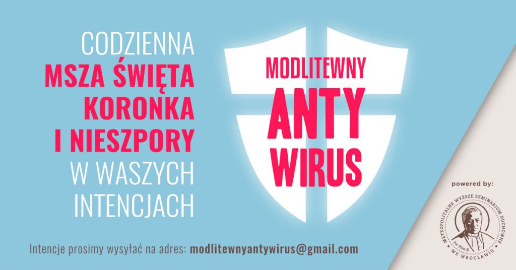 Dziś rozpoczyna się modlitewna akcja kleryków z wrocławskiego seminarium duchownego. Siedząc w zamknięciu chcą wspomóc innych swoją modlitwą, na którą mają aktualnie więcej czasu. Można im przesyłać swoje intencje. Akcja nosi nazwę „Modlitewny antywirus”.