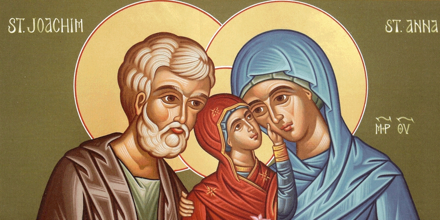 Św. Anna – podobnie jak jej mąż, Joachim – wywodziła się z królewskiego rodu Dawida. Urodziła się w okolicach Betlejem. Jej rodzice byli bardzo pobożni, w tym duchu też ją wychowywali. Anna służyła w Świątyni Jerozolimskiej i według legendy, swego przyszłego męża poznała szukając zaginionego baranka, który miał być przeznaczony na ofiarę. Wyszła za mąż w wieku 24 lat, a jej małżeństwo było niezwykle zgodne, ponieważ Joachim także był bardzo pobożnym człowiekiem. Przez 20 lat nie doczekali się jednak potomstwa, co w kulturze żydowskiej uznawane było za hańbę i karę Bożą. Gdy Joachim doznał upokorzenia w świątyni – kapłan nie pozwolił mu, jako bezdzietnemu, złożyć ofiary, w rozpaczy postanowił opuścić Annę i udał się na pustynię, by modlić się i pościć. W tym czasie opuszczona Anna także modliła się o potomstwo, obiecując Bogu, że dziecko zostanie ofiarowane na służbę w świątyni. Oboje małżonków nawiedził Anioł, zapowiadając przyjście na świat dziewczynki. Wówczas Joachim powrócił do żony, a potem, w wieku 45 lat, Anna urodziła córkę, której nadali imię Maria. Zgodnie z obietnicą, oddali ją na służbę do świątyni.
