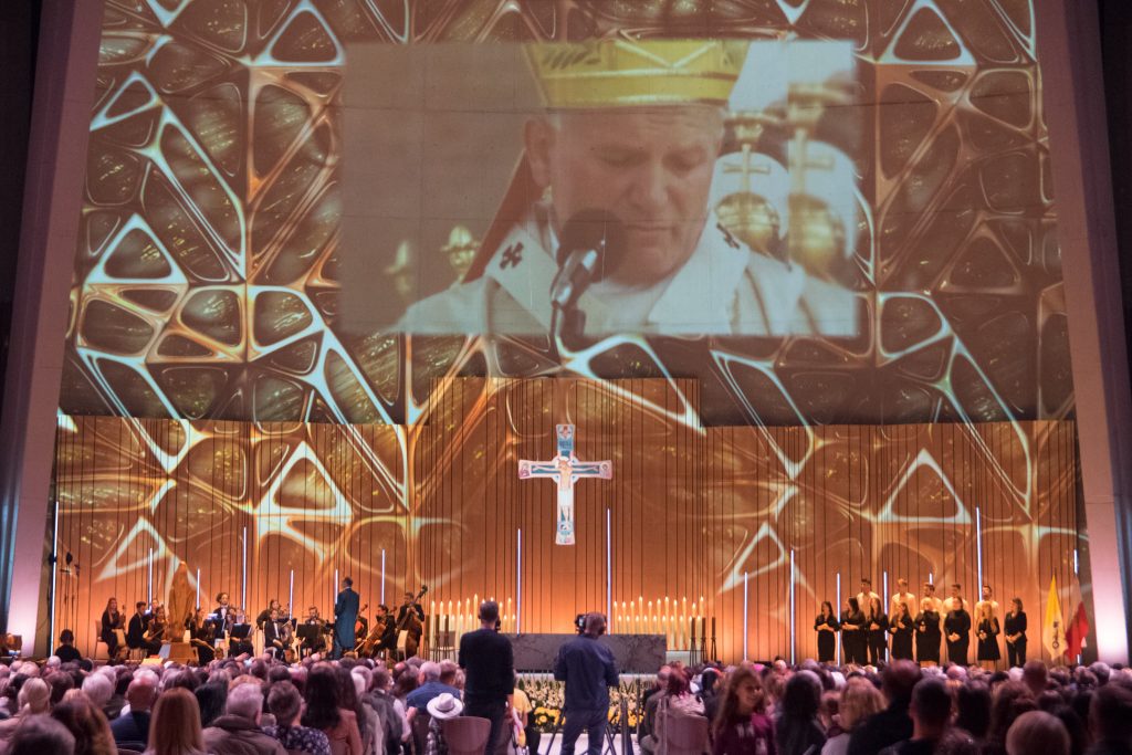 Na zakończenie nawiązał do św. Jana Pawła II i sługi Bożego kard. Stefana Wyszyńskiego, tych dwóch wielkich Polaków, „których drogi tak bardzo się splatały”. Podkreślił, że „ich drogi krzyżowały się wielokrotnie, po raz pierwszy w 1958 r., kiedy Karol Wojtyła został biskupem pomocniczym krakowskim i wszedł w skład Konferencji Episkopatu, potem przez całe ich życie, m.in. na Soborze Watykańskim II oraz kiedy Wojtyła był kardynałem w Krakowie. Zaznaczył, że ich drogi splotły się także w sposób szczególny podczas pielgrzymki Jana Pawła II do Polski w 1979 r., która to pielgrzymka była wspominana podczas dzisiejszego koncertu, z racji jej 40-lecia. Podkreślił, że była to pielgrzymka, gdzie kard. Wyszyński i Jan Paweł II „byli razem i wiernie sobie towarzyszyli”.