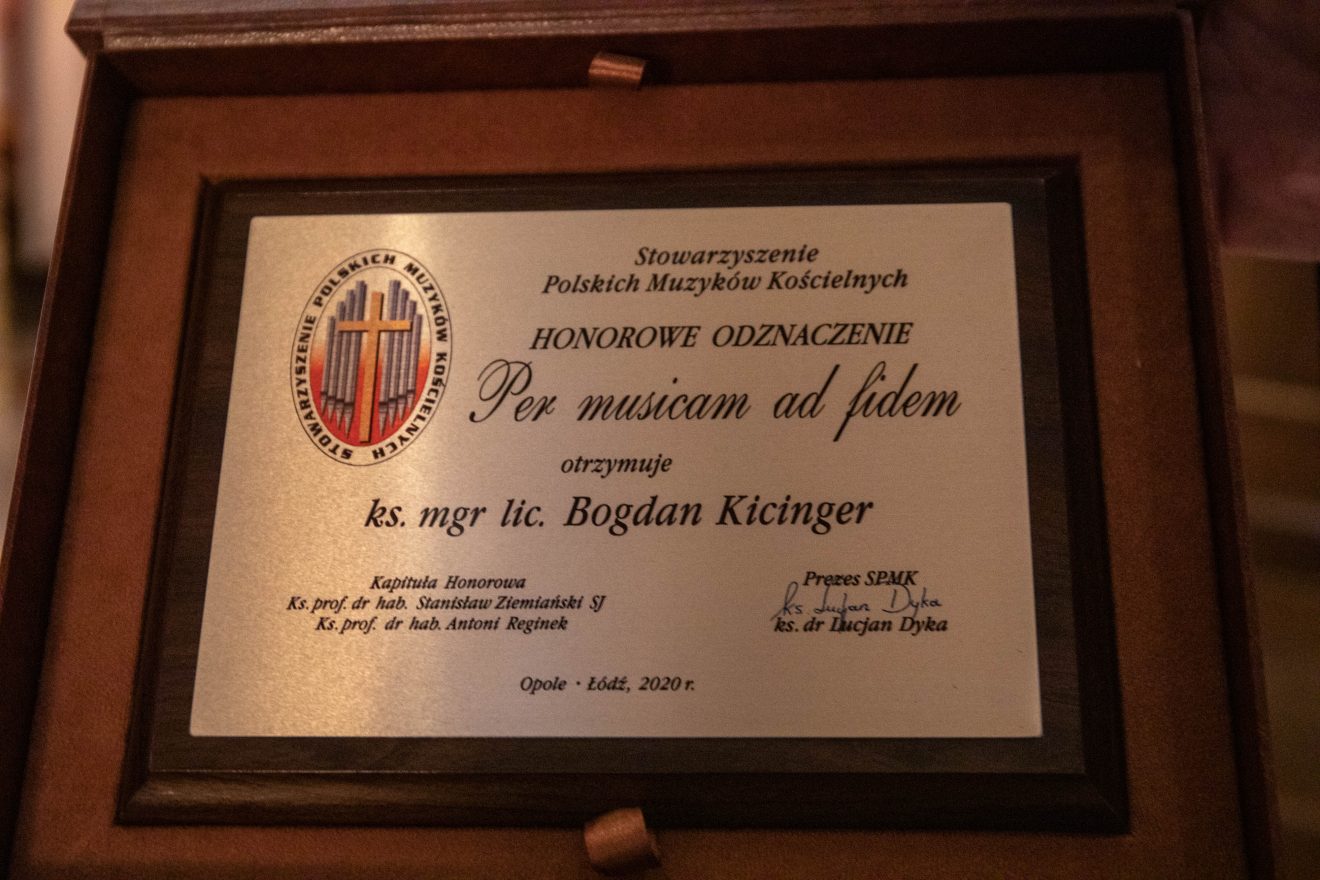 Pod koniec liturgii miało miejsce wręczenie honorowego odznaczenia Per musical ad Fidem – przyznawanego przez Stowarzyszenie Muzyków Kościelnych. W tym roku nagrodę przyznano ks. Bogdanowi Kicingerowi z Diecezji Gliwickiej. Nagrodę – poprzedzoną wygłoszeniem laudacji – wręczył metropolita łódzki.