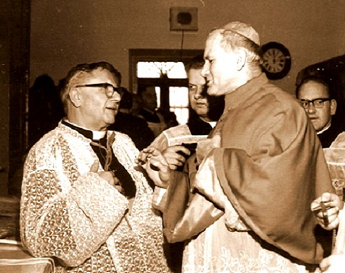 Ksiądz infułat Edward Zacher i jego ministrant, który został papieżam Jan Paweł II | Fot. Archiwum