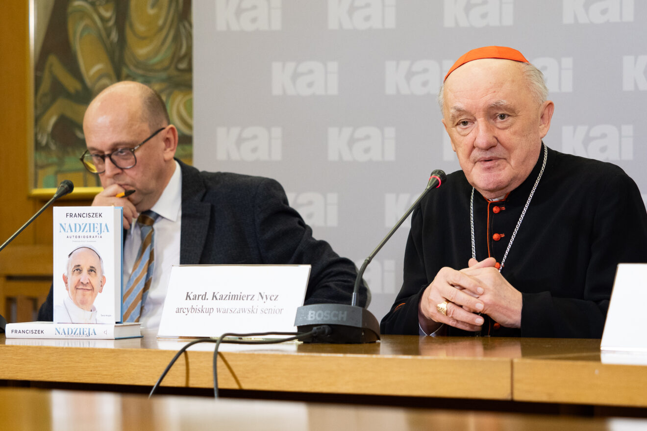 Fot. Alicja Kościesza (KAI)– Tym, co papież z Ameryki Południowej wniósł do Kościoła, jest pewien typ normalności, do którego starsze pokolenia nie były przyzwyczajone – podsumował kard. Kazimierz Nycz, dzieląc się swoimi spostrzeżeniami po lekturze autobiografii papieża Franciszka pt. „Nadzieja”. Dziś w Warszawie odbyła się prezentacja publikacji. Organizatorami wydarzenia były Katolicka Agencja Informacyjna oraz Wydawnictwo Świat Książki.