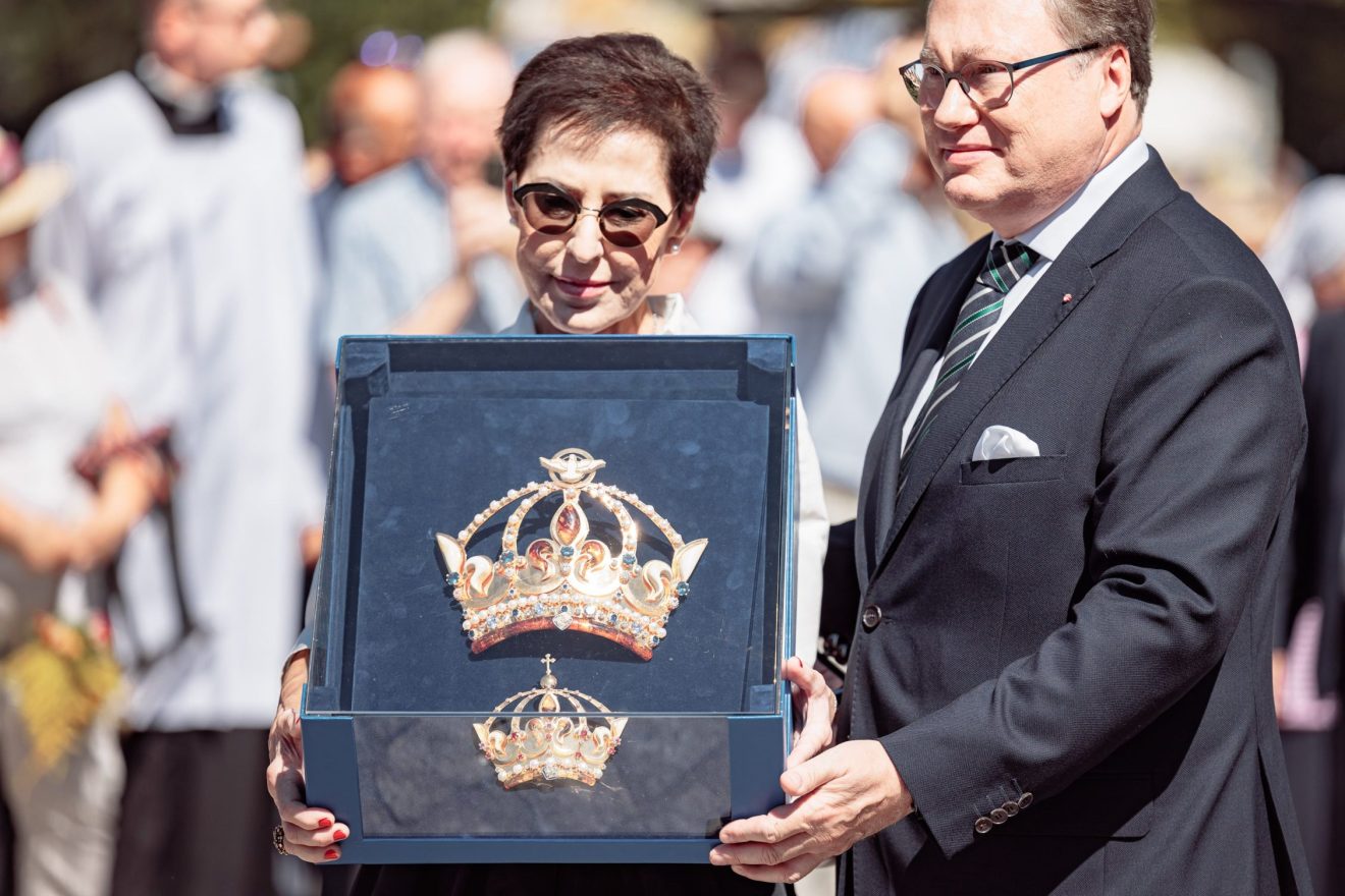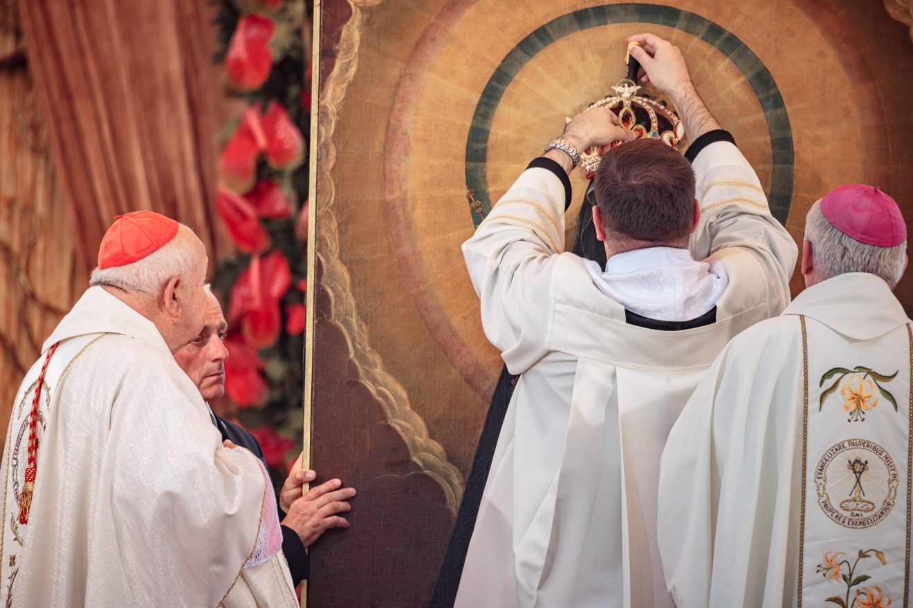 Po homilii cudowny obraz został wyjęty z ram i przeniesiony przed ołtarz, gdzie Legat Papieski, wypowiadając słowa błogosławieństwa, założył nowe jubileuszowe korony na skronie Matki Bożej i Pana Jezusa. Nowe korony mają związek z Ziemią Świętą. W koronie Maryi jest kamień z Groty Bożego Narodzenia w Betlejem, a w koronie Pana Jezusa kamień z Golgoty w Jerozolimie.