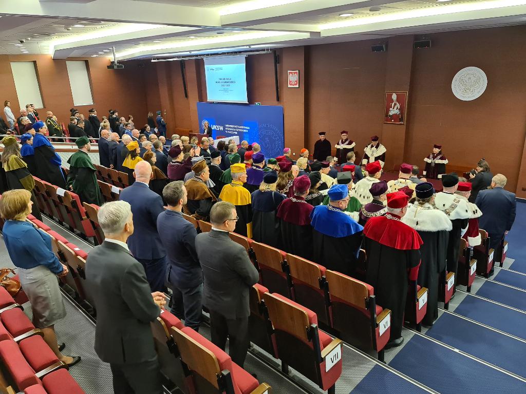 Inauguracja roku w auli im. Roberta Schumana, Auditorium Maximum UKSW rozpoczęła się odśpiewaniem hymnu państwowego. Zebranych, w tym m.in. kard. Kazimierz Nycza, metropolitę warszawskiego i abp. Salvatore Pennacchio, nuncjusza apostolskiego w Polsce, powitał rektor UKSW ks. prof. dr hab. Ryszard Czekalski. Poinformował o bardzo dobrych ocenach, jakie UKSW otrzymał w związku z zakończeniem ewaluacji jego naukowej działalności. Zaznaczył, że uniwersytet nie utracił żadnych uprawnień nadawania stopnia doktora oraz doktora habilitowanego, przeciwnie, zyskał je w 4 nowych dyscyplinach.