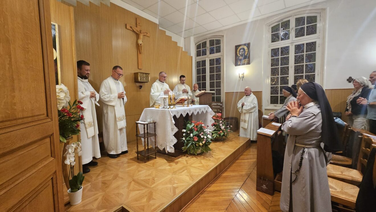 Fot. Polskifr.fr W poniedziałkowy wieczór, 29 września 2025 roku, w święto Świętych Archaniołów Michała, Gabriela i Rafała, w Polskim Seminarium w Paryżu została odprawiona uroczysta Msza św. dziękczynna za 80 lat posługi Sióstr ze Zgromadzenia Służebnic Najświętszego Serca Jezusowego. Liturgii przewodniczył Rektor Polskiej Misji Katolickiej we Francji ks. Bogusław Brzyś.
