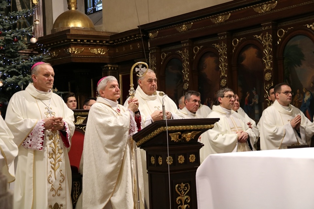 Wraz z bp. Janiakiem modlili się: biskup pomocniczy diecezji kaliskiej Łukasz Buzun, duchowieństwo, siostry zakonne, przedstawiciele władz samorządowych, uczestnicy Orszaku Trzech Króli, którzy przyszli z kościoła Świętej Rodziny na Rogatce oraz licznie zgromadzeni wierni.