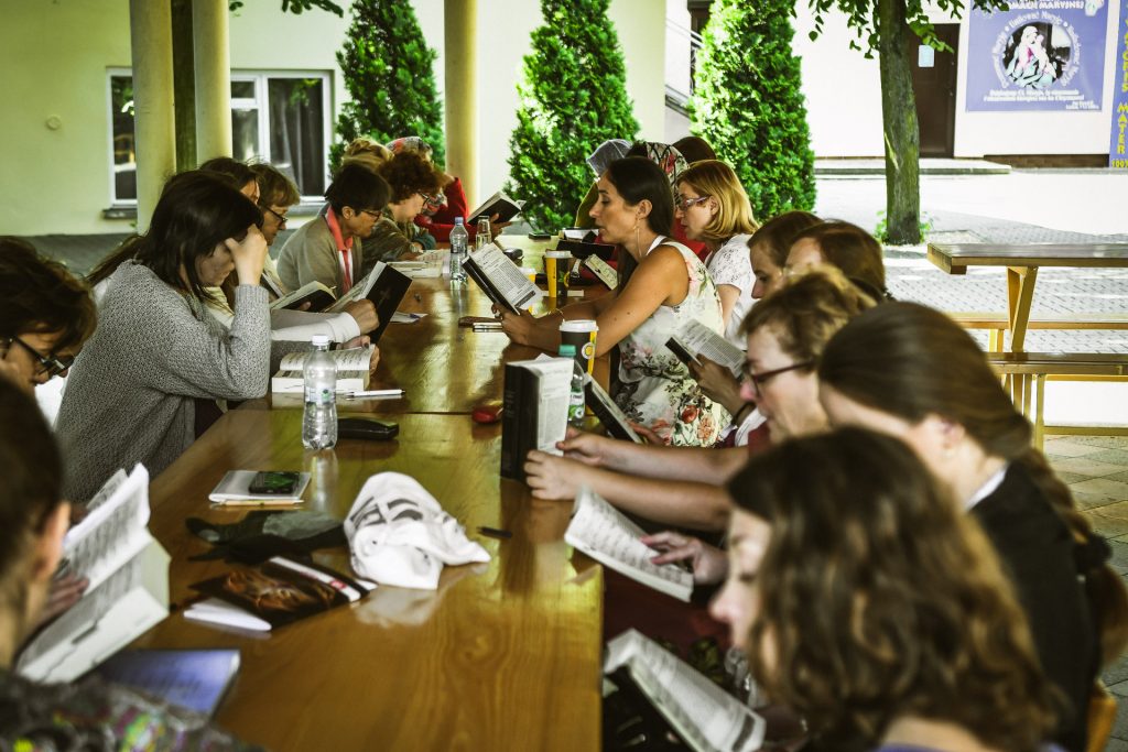 – Podczas warsztatów poznawaliśmy muzykę katolicką, czyli taką, która jest katolicka nie tylko w treści, ale też w formie i stylu. Co paradoksalne, ta dziedzina sztuki jest dzisiaj odkrywana i doceniana nierzadko bardziej poza Kościołem niż przez katolików, lecz dopiero w wymiarze liturgicznym wraca jej tętno i rozkwita całe jej piękno. To jest najważniejsza wartość tych warsztatów. Śpiewając wiele godzin dziennie podczas Mszy i oficjów (a jednego dnia nawet wszystkie osiem godzin brewiarzowych, łącznie z nocnym matutinum) wchodzi się w rytm tej modlitwy i tej muzyki, zaczyna się nimi oddychać. Dla nas, naturalnie nieprzyzwyczajonych do takich „sportów ekstremalnych”, jest to trochę szokujące, ale dopiero w takim zanurzeniu można zacząć czuć i rozumieć o co w tym chodzi. Dzięki przewodnictwu kantorów na czele z Marcinem Bornusem-Szczycińskim, jedni mogli zacząć przygodę z monodią liturgiczną, a inni dochodzić do wprawy w śpiewie i czytaniu neum (średniowiecznego zapisu chorału gregoriańskiego) – wyjaśnia Jan Kiernicki.