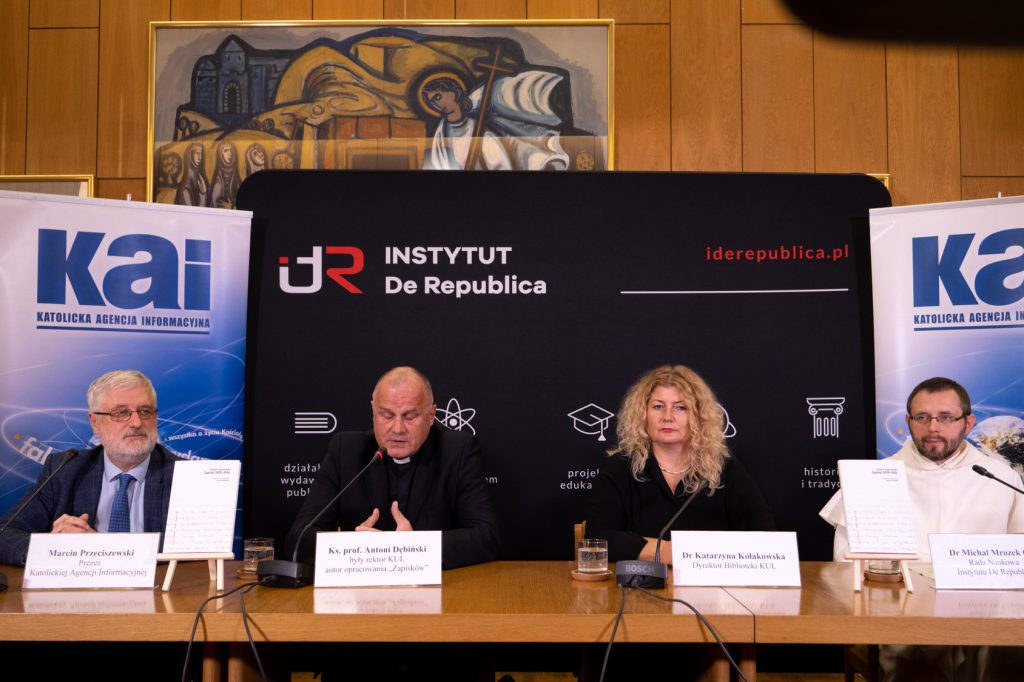 Fot. Hubert Szczypek (KAI)– Ks. prof. Antoni Szymański był intelektualistą wysokiej klasy a jednocześnie człowiekiem bardzo zaangażowanym w życie społeczne Polski 20-lecia międzywojennego – przekonywali uczestnicy spotkania promocyjnego „Zapisków” ks. Antoniego Szymańskiego, wydanych przez Instytut De Republica. To pierwsze wydanie drukiem zapisków z lat 1929 – 1934, które przechowywane są w Bibliotece Uniwersyteckiej. Prezentacja książki zorganizowana przez KAI odbyła się dziś w siedzibie Sekretariatu KEP w Warszawie.