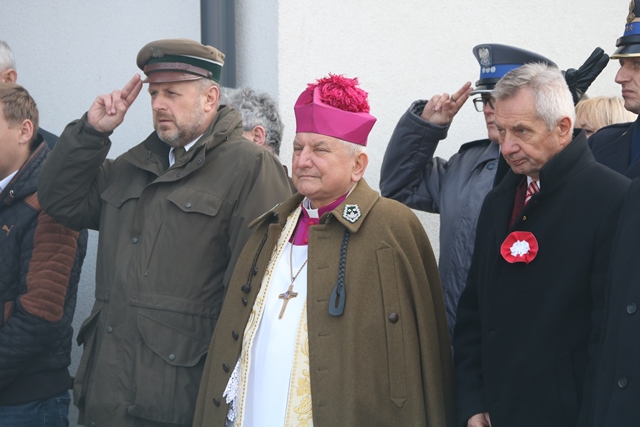 Biskup kaliski Edward Janiak poświęcił także tablicę upamiętniającą 101. rocznicę odzyskania przez Polskę niepodległości.