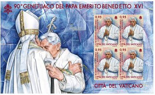 Znaczek pocztowy z okazji 90. urodzin Benedykta XVI