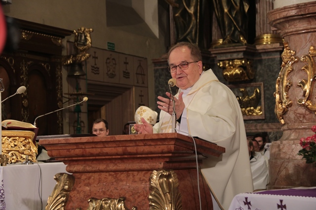Akcentując, że w sercu św. Józefa odnajdujemy kochające wszystkich ojcowskie serce Boga wskazał, że zmarły bp Teofil Wilski słowa „Służyć ojcostwu Boga” uczynił zawołaniem swojej posługi biskupiej.