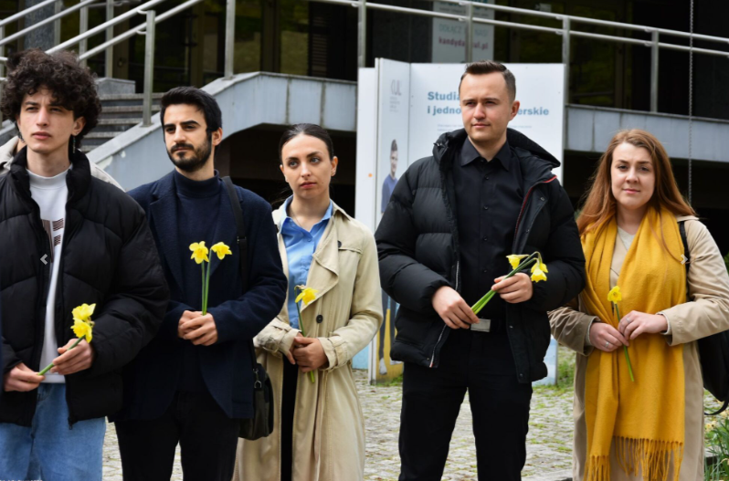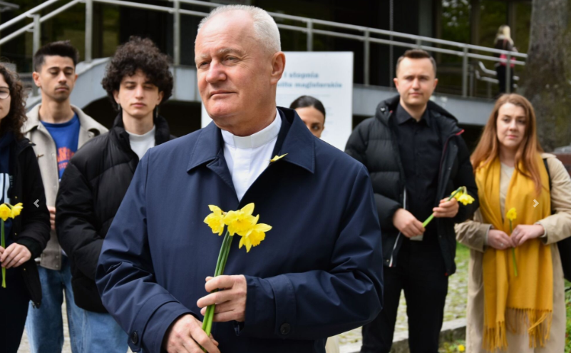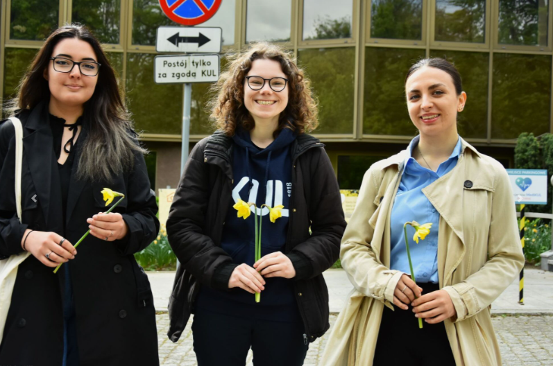 Fot. Julia Sroczyk / KULKatolicki Uniwersytet Lubelski Jana Pawła II włącza się w akcję społeczno-edukacyjną „Żonkile”, zainicjowaną przez Muzeum Historii Żydów Polskich POLIN. Rektor, studenci i pracownicy uczelni rozdawali kwiaty, upamiętniające żydowskich powstańców z getta warszawskiego.
