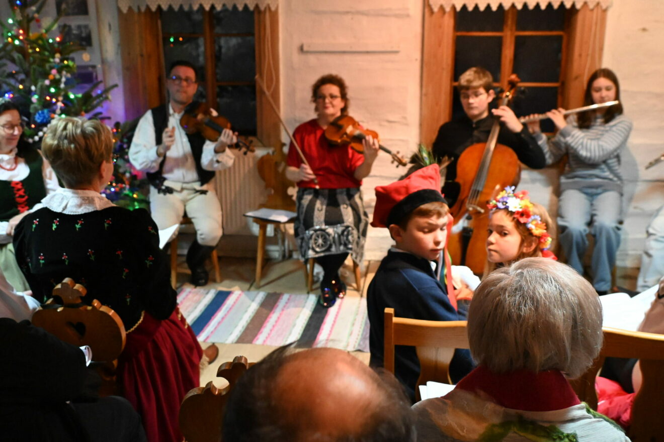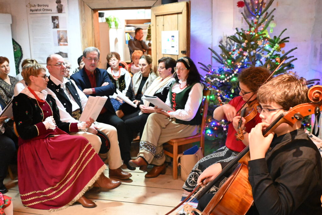 Fot. Jan Głąbiński W sobotni wieczór Czarna Karczma w Muzeum – Orawskim Parku Etnograficznym w Zubrzycy Górnej rozbrzmiewała dźwiękami kolęd. Podczas Wieczoru Kolęd „Krakowiacy i Górale” uczestnicy w tradycyjnych strojach regionalnych wykonywali zarówno klasyczne kolędy, jak i te charakterystyczne dla Podhala i Orawy, tworząc wyjątkową, świąteczną atmosferę.